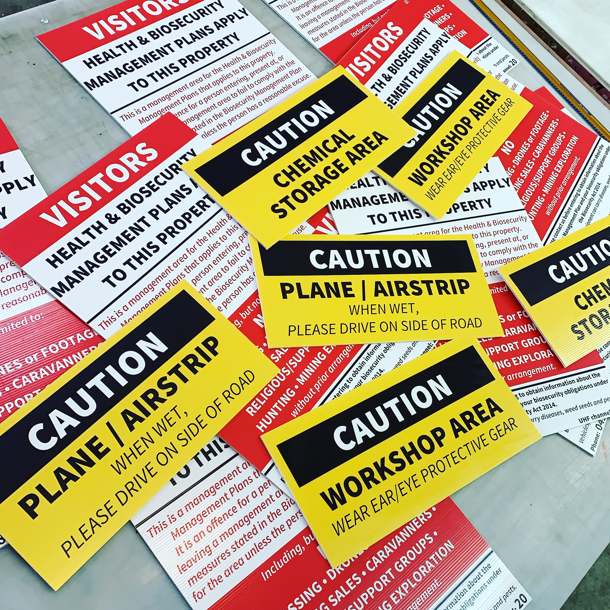 We print direct to a wide range of rigid substrates including corflute, ACM (aluminium composite panels), acrylic, PVC, foamboard, metal panels and safety signage materials. If you’re unsure about your material, just ask — we’ll confirm suitability.